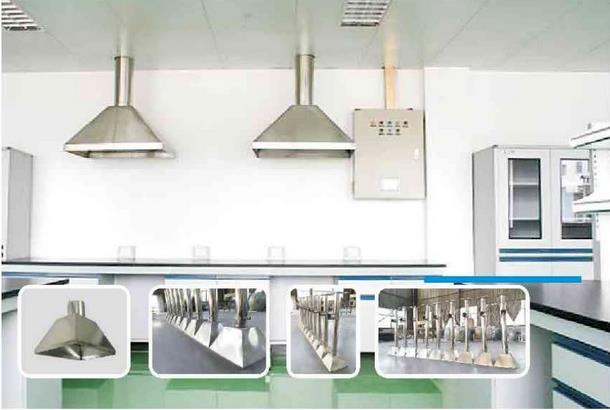 ③、不銹鋼集氣罩:采用1.0mm316不銹鋼板制作,根據(jù)實(shí)驗(yàn)需要,抽氣罩可以上下伸縮150mm,以方便實(shí)驗(yàn)操作。