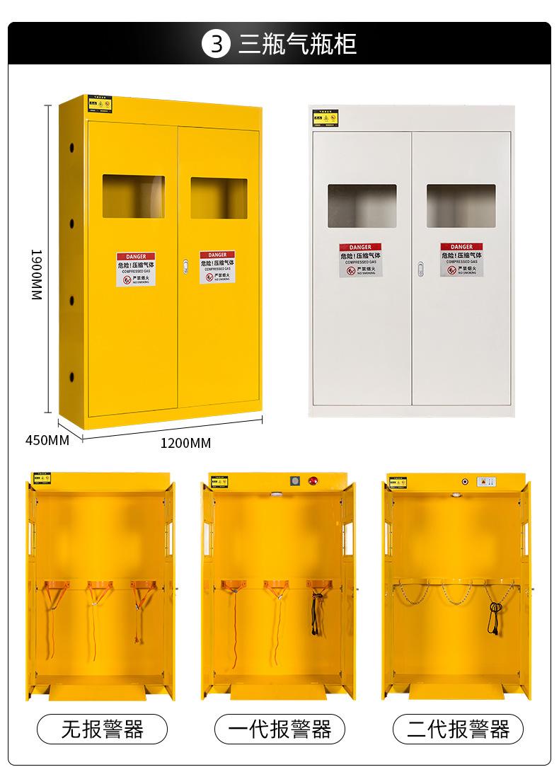 三瓶氣瓶柜與單瓶及雙瓶氣瓶柜區(qū)別于氣瓶存儲數(shù)量的不同,其功能特性都是一致的。